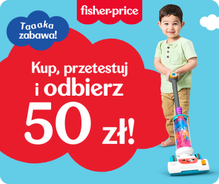 Kup w dowolnym sklepie Smyk lub na smyk.com zabawki marki Fisher-Price® za min. 120 zł i zachowaj dowód zakupu. Zarejestruj zakup i odbierz zwrot 50 zł w postaci vouchera do Smyk - do wykorzystania w sklepach stacjonarnych lub na smyk.com.